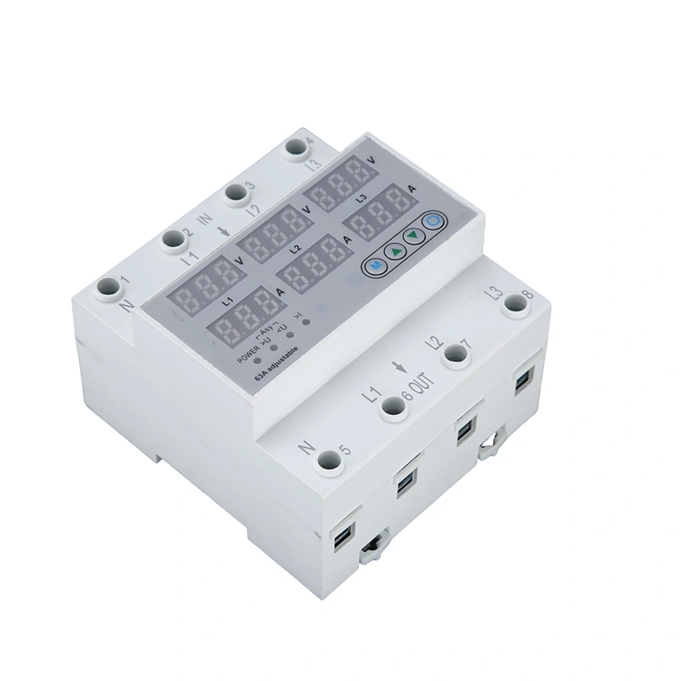 63A 80A 100A Напонски заштитник е главно може да го следи напонот на мрежата и други податоци. И автоматски го прекинува напојувањето кога напонот е ненормален, како што е превисок или премногу низок уред. Неговите главни функции вклучуваат: